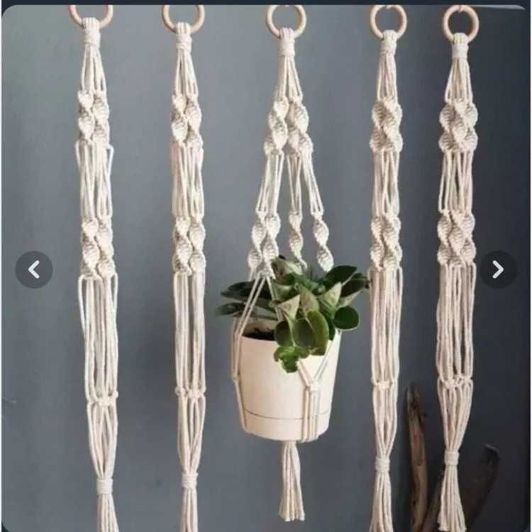 آویز گلدان مکرومه با استفاده از متریال باکیفیت و در رنگبندی شیری،نسکافهای می باشد.